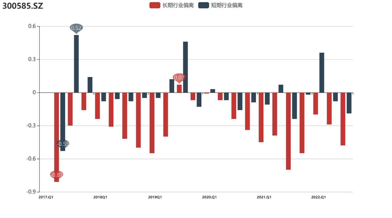 行业偏离:公司溢价协同表现在行业中的处境同样不够乐观,截至2022年3季度,奥联电子的行业偏离值为-0.48,显著低于行业平均水平,这一问题从登陆资本市场起延续至今,公司还需积极探索内在价值与市值协调增长的实现路径。