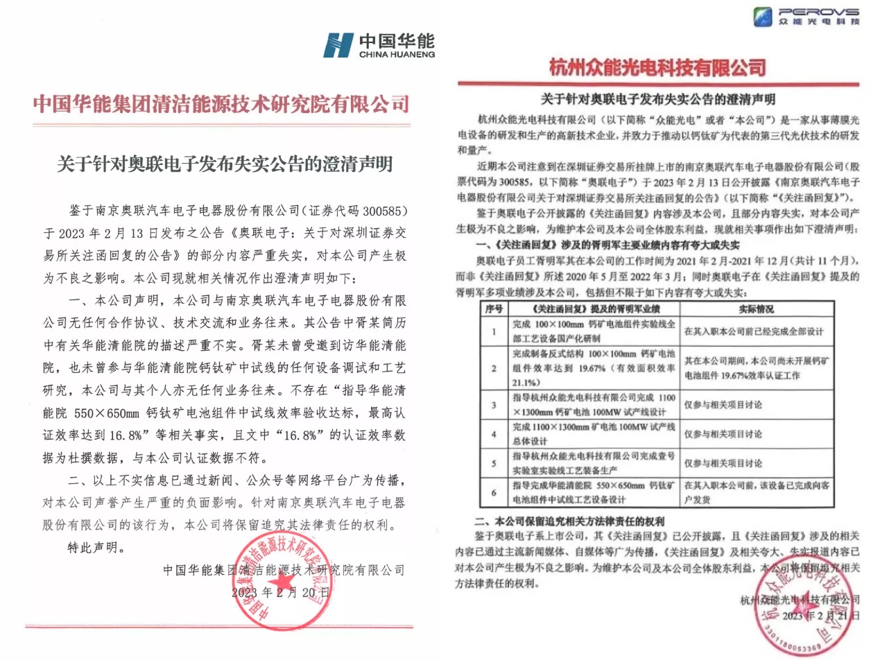 还未等公司有所表态,胥明军的前东家便打出了第二记“重锤”。22日,在众能光电发布的一则澄清声明中,提出了6点有关胥明军业绩内容夸大或失实的情况,几乎坐实了胥明军履历造假的事实。然而奥联电子董秘办相关人员依然对外表示,“华能清能院的声明不属实,公司及胥明军都不存在造假行为,相关媒体报道并不属实。”