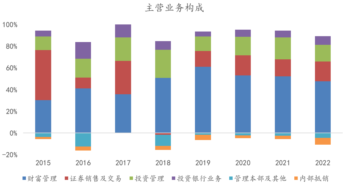 近年来,券商经纪业务日渐式微,对营收的贡献弹性减弱。一方面,佣金率持续下降,行业竞争更加激烈,传统经纪业务利润空间被不断压缩;另一方面,经纪业务对市场行情依赖性强,波动率大,政策周期显著。这样的背景下,推动财富管理加速转型呼之欲出,有利于熨平业绩波动,为业绩贡献高弹性。
