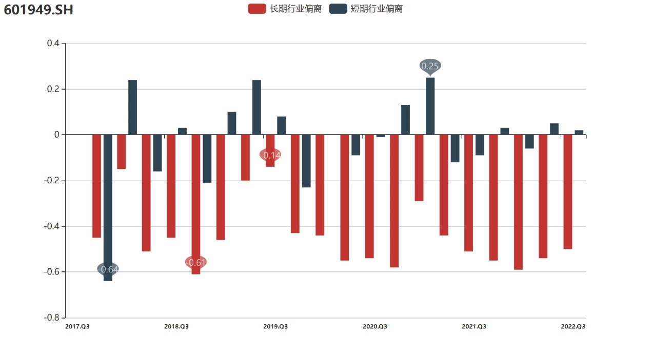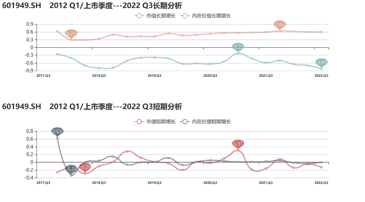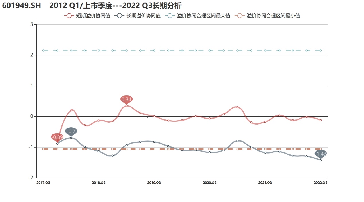 溢价协同值:作为传统出版行业的低估值股票,中国出版过去几年一直受到市场冷落。与上市首季度相比,公司长期溢价协同围绕-1上下波动,2021年以来则持续走低,截至2022年Q3,长期值仅-1.43,创下上市以来新低。去年年底以来,在“中特估”行情持续演绎下,公司作为稳健的行业龙头备受追捧,行情加速向上,溢价协同也望显著提升。