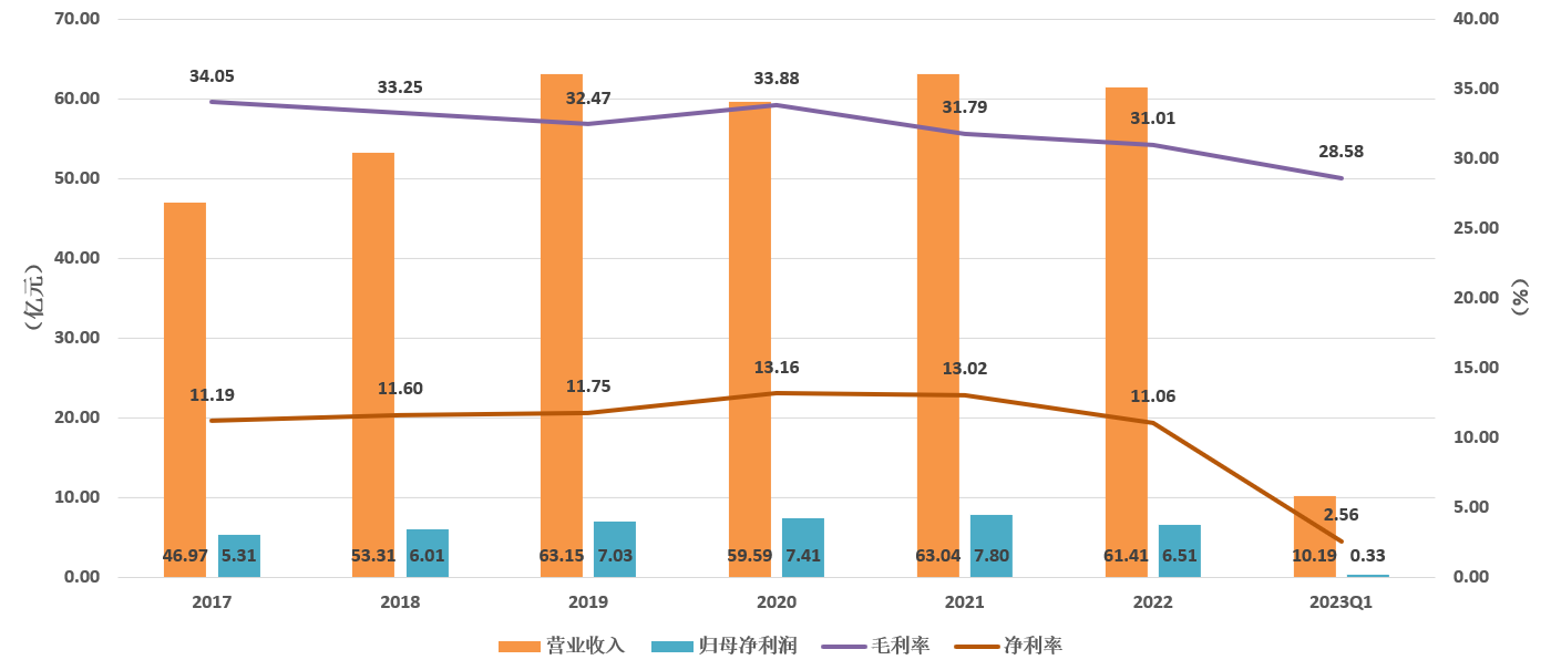 中国出版在市场波动下展现出了较强的抗风险能力,2022年实现营业收入61.41亿元、归母净利润6.51亿元,同比均有小幅下滑。2023年Q1数据显示,公司前3个月实现营业收入10.19亿元,同比增长22.56%;实现归母净利润3295万元,同比大增838%;扣非净利润14.2万元,同比扭亏为盈。