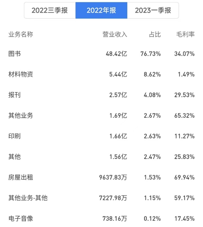 2022年,受疫情扰动和消费疲软影响,图书零售市场销售额同比下降12%,实体店渠道零售图书市场同比下滑37%。2023年Q1随着疫情影响减弱,图书零售销售规模降幅逐月收窄。受此影响,今年以来出版行业收入和净利均逐步改善。