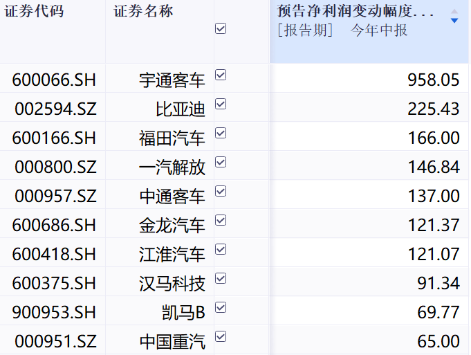 6月以来,大盘陷入持续震荡,此前沉寂许久的汽车板块却出现明显上涨。正值中报披露窗口期,在汽车销量持续攀升、出口高速增长的背景下,部分上市公司业绩已有所表现。从业绩预告来看,汽车行业预喜率超七成,其中比亚迪、英利汽车、福田汽车、中通客车、江淮汽车等净利润更是较去年同期有了翻倍式增长。