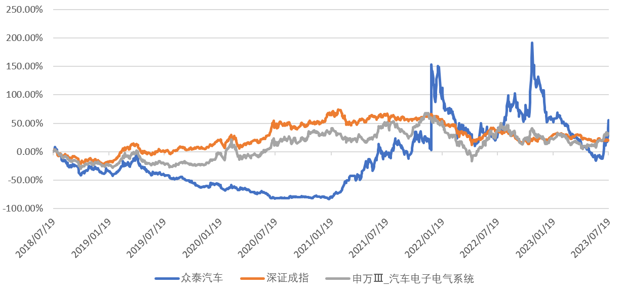 行业偏离方面,与同行业(申万Ⅲ级——汽车电子电气系统)均值相比,公司此前溢价虚高的状况明显改善,市场对于新众泰的态度回归理性。