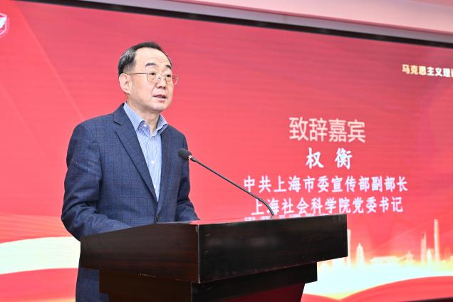 中共上海市委宣传部副部长、上海社会科学院党委书记权衡和中国社会科学院大学党委书记崔唯航致开幕辞。