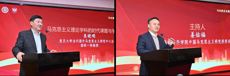 会议主旨演讲由上海社会科学院中国马克思主义研究所所长、上海社会科学杂志社社长、总编辑姜佑福主持。国家教材委员会马工程审议委员会主任委员,教育部社会科学委员会副主任委员、中央马克思主义理论研究和建设工程咨询委员顾海良,中共中央党校原副校长、中央马克思主义理论研究和建设工程咨询委员李君如,中国社会科学院马克思主义研究院院长、中国社会科学院大学马克思主义学院院长辛向阳,中央马克思主义理论研究和建设工程咨询委员、天津大学马克思主义学院院长颜晓峰,复旦大学当代国外马克思主义研究中心主任、国家哲学社会科学一级教授吴晓明分别发表主旨演讲。姜佑福研究员在主持主旨演讲时指出,马克思主义作为党和国家的指导思想与马克思主义理论学科在哲学社会科学学科体系中的领航作用之间存在一定落差。为此,我们对于马克思主义理论学科的根本、根基、核心、结构要有清晰、明确、深刻的认识,要扎根中国、立足时代,在赓续中华文明和引导人类文明的进程中厚植思想学术根基,切人类未来,弘扬时代精神,关深入研究中国式现代化的一系列重大理论和实践问题,推进马克思主义学科高质量发展,在中国自主知识体系建设中有效发挥学科领航作用。