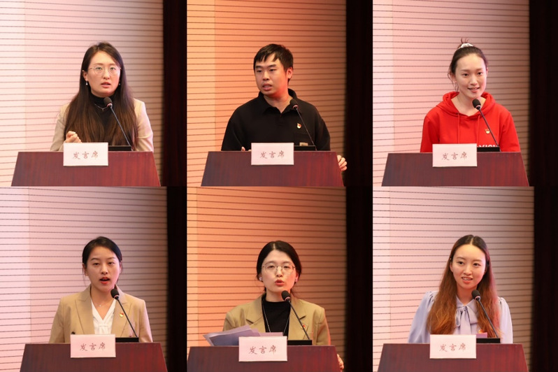 上海社会科学院青年讲师团秘书长林俊瑛,同济大学马克思主义学院助理教授、法学博士江煊,上海师范大学马克思主义学生理论宣讲团代表李姝凝,同济大学第二附属中学讲师团成员叶倩,上海新闻出版职业技术学校团委书记王莹,上海市光明中学团委书记候雨佳六位青年代表立足自身专业领域与工作实际,围绕学习贯彻党的二十届四中全会精神分享学习领会与实践感悟。