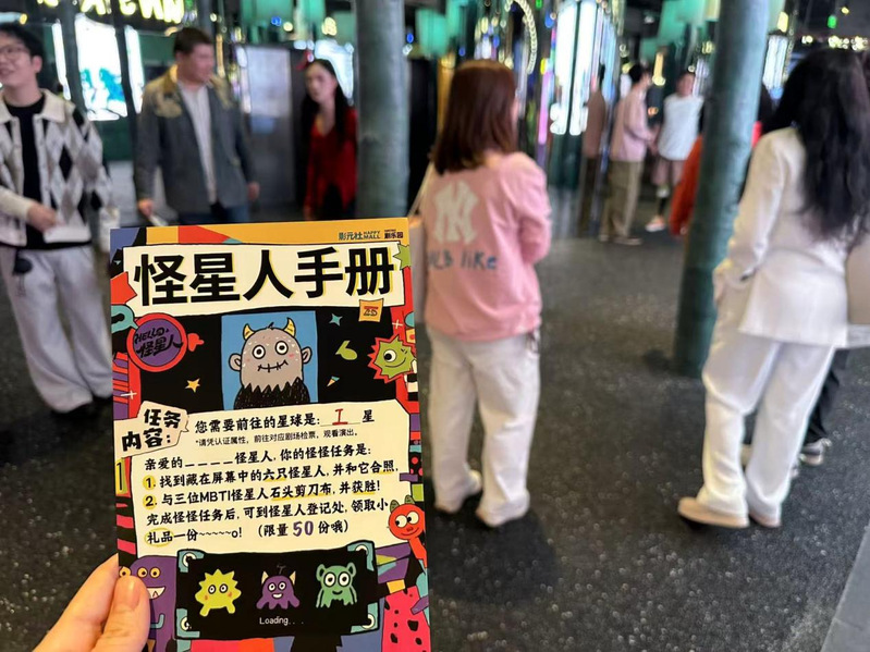 奇幻夜启,一场为“怪星人”定制的沉浸式狂欢。在活动第一环节,我院青年们领取了《怪星人手册》,开启了属于自己的“怪星人任务”:寻找藏在屏幕里的六只怪星人并合影,与三位MBTI属性的“怪星人”玩石头剪刀布并获胜。这些充满趣味性的任务,迅速打破了陌生感,让青年们在探索与互动中快速融入“怪星人”的奇幻世界。